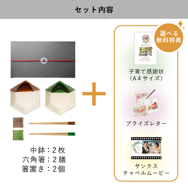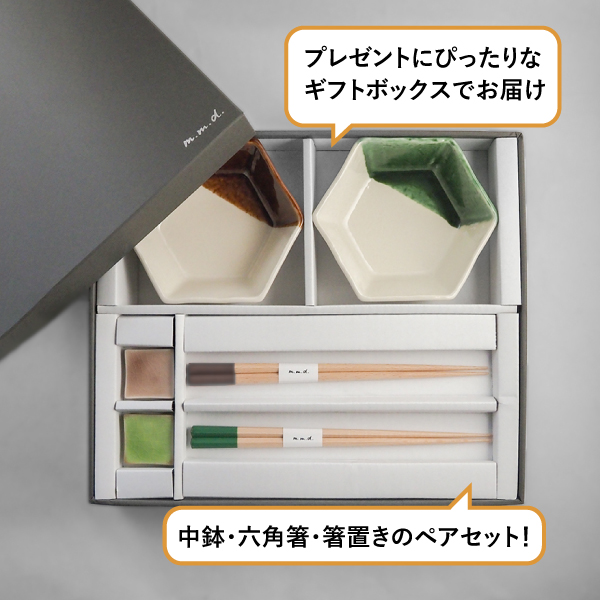 縁起がいいとされている六角を取り入れた中鉢とお箸、箸置きをセットに。