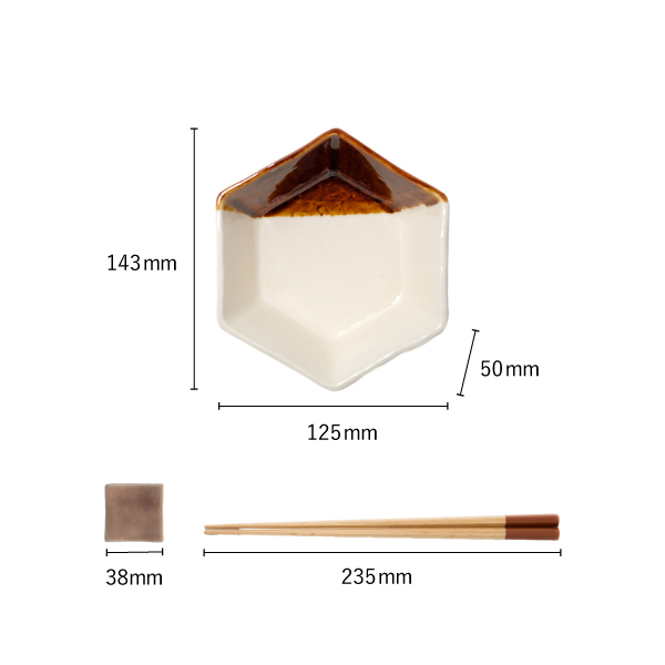 | 内容物 | 中鉢・箸置き・箸2個セット 中鉢:幅125×奥行143×高さ50mm 箸置き:幅38×高さ10mm 箸:幅235mm(外寸法) |