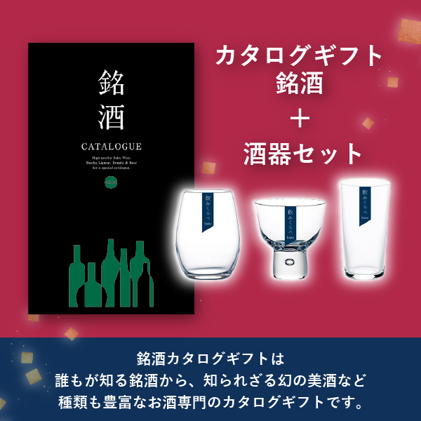 選ぶ楽しみと知る愉しみを贈る銘酒カタログギフト。作り手の顔が見える、思いが伝わる、そんなお酒を国内外から探し出して纏めました。誰もが知る銘酒から、知られざる幻の美酒や日本酒・焼酎・ワインなど種類も豊富なお酒専門のカタログギフトです。