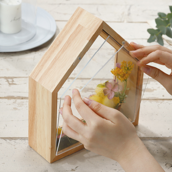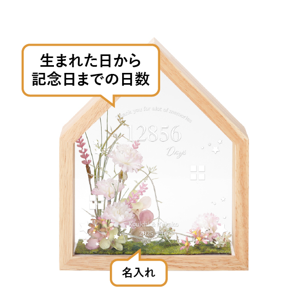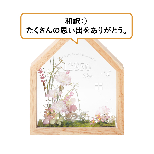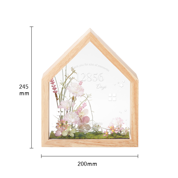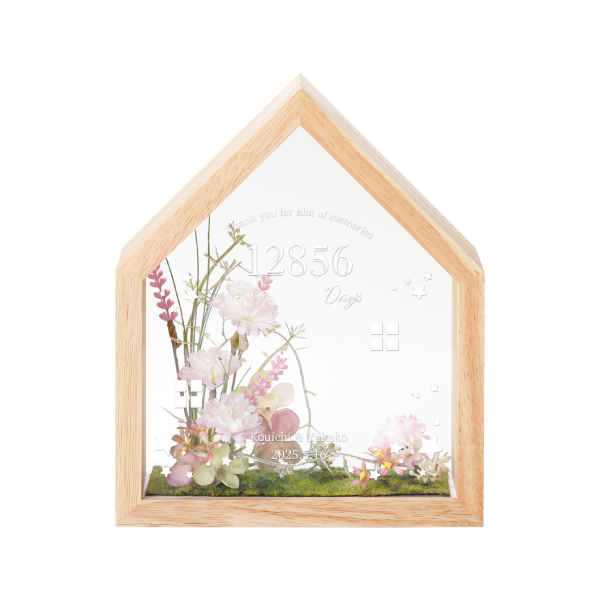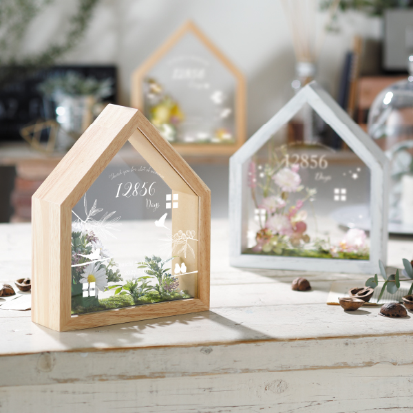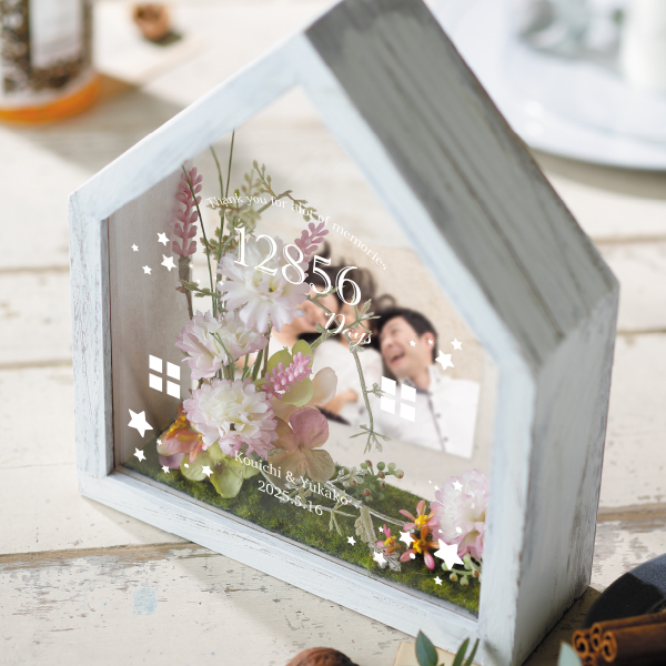 ご家族との大切な思い出の写真や感謝を込めたメッセージを、小さなお家型のボックスの中へ詰め込んで、ありったけの思いを込めた世界に一つだけの贈り物に。