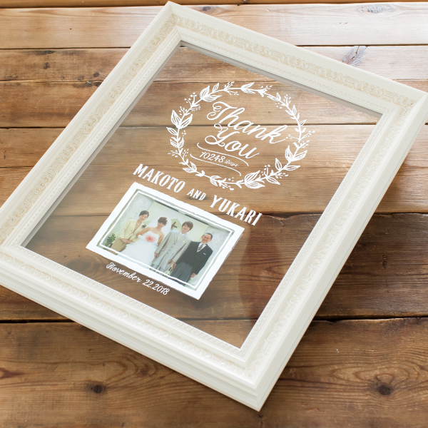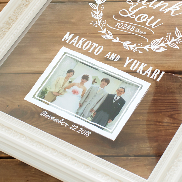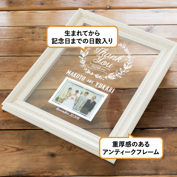 アンティーク調のフレームにクリアガラスでエレガントに思い出の写真を添えて、ご両親へ今まで育ててくれた感謝の気持ちを伝えます。