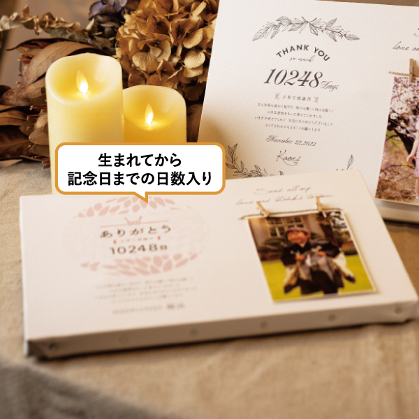 結婚式の両親プレゼントはもちろん、成人式などの節目へ贈るプレゼントや出産祝いのメッセージを入れるのにもおすすめです!