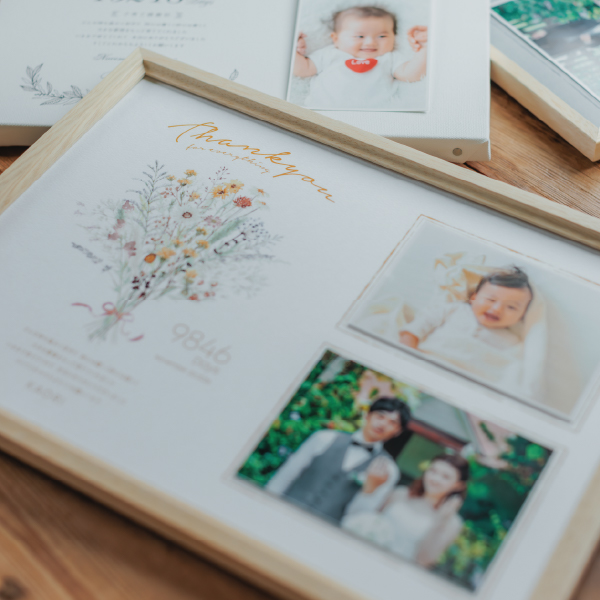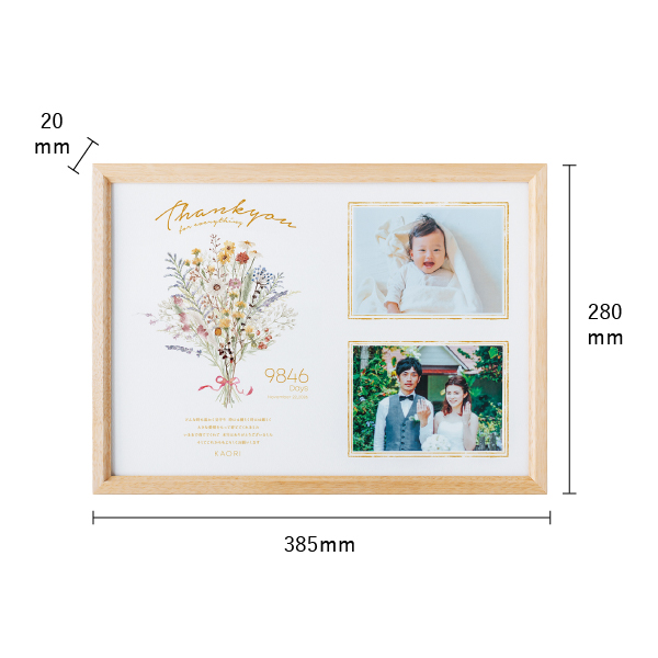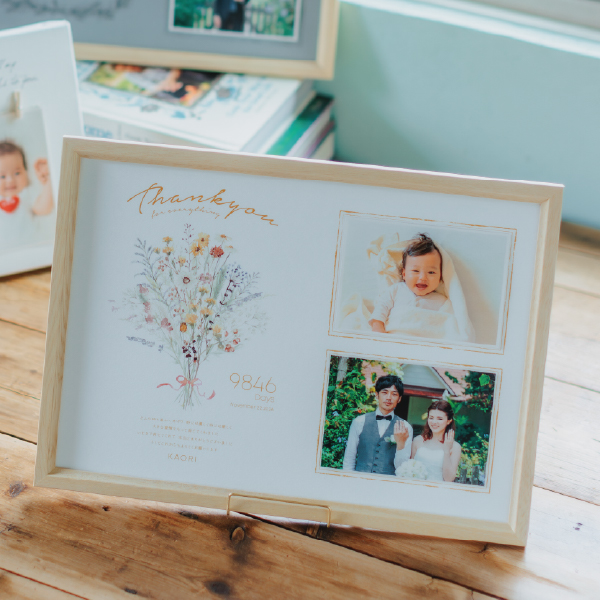 ナチュラルな雰囲気のフレームに、小さな頃の写真やお好きな写真を添えて温かみのある贈り物に。