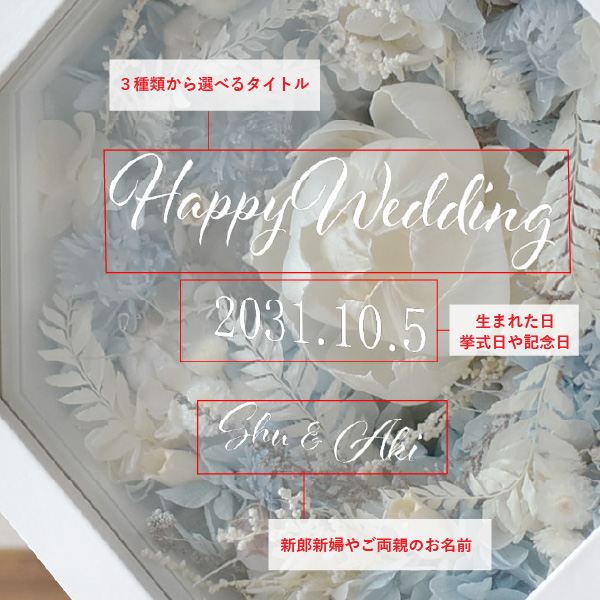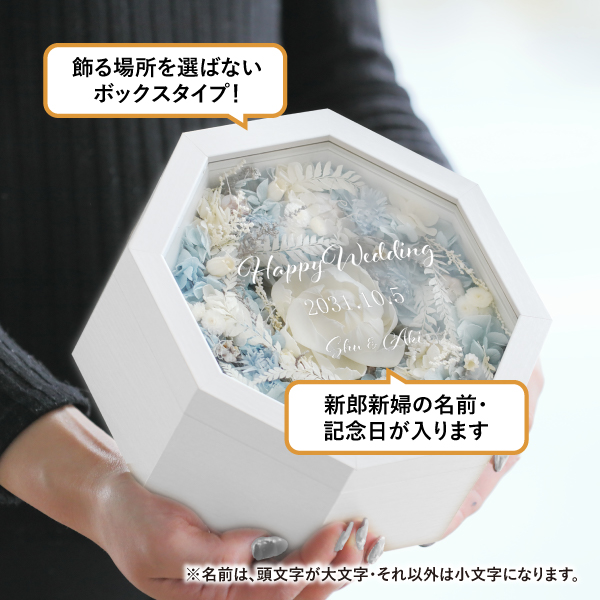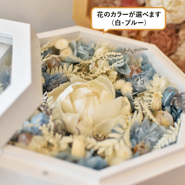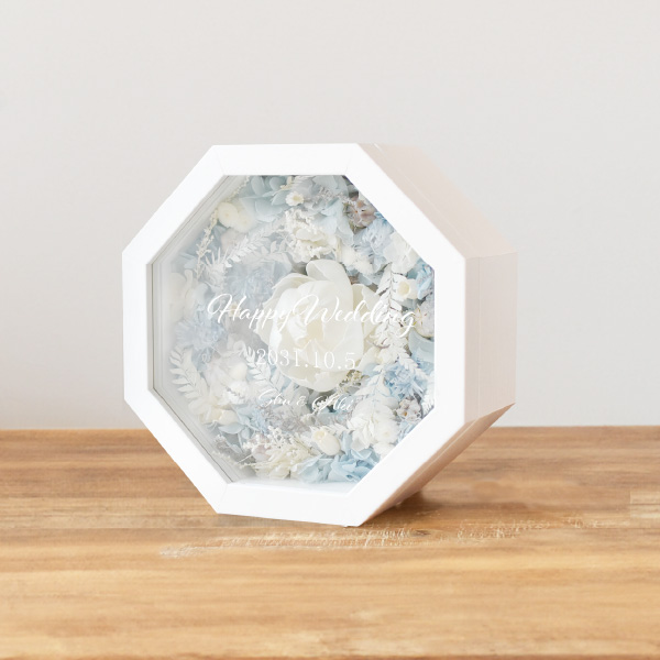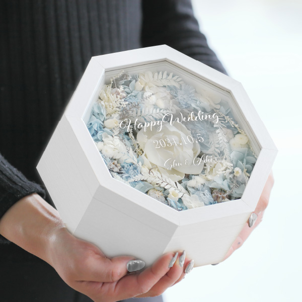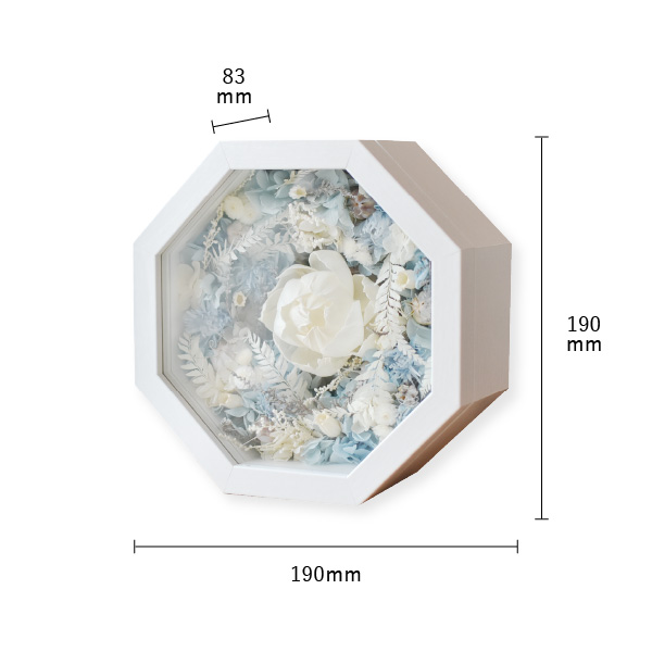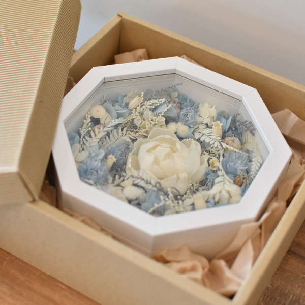 縁起の良い八角形のプリザーブドフラワーアレンジのアイテム。