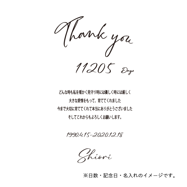 結婚式の両親プレゼントはもちろん、成人式などの節目へ贈るプレゼントや出産祝いのメッセージを入れるのにもおすすめです!