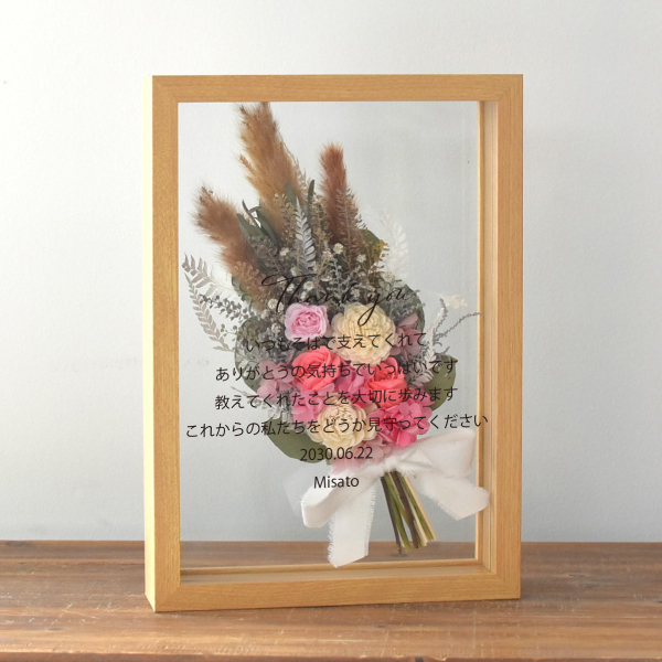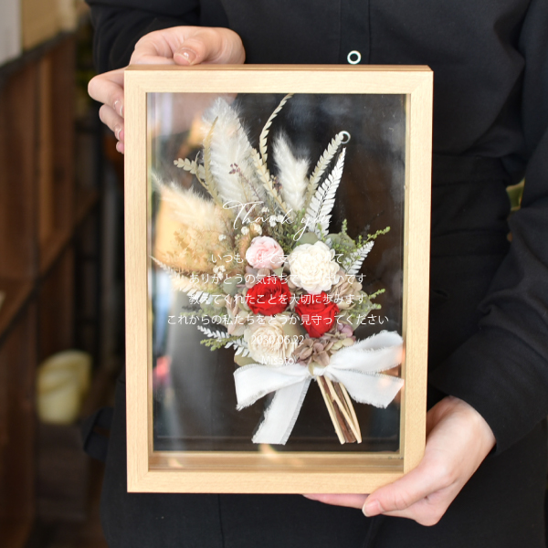 フラワーボックス 子育て感謝状 選べるプリザーブドフラワーブーケ|両親プレゼントならPIARY(ピアリー)