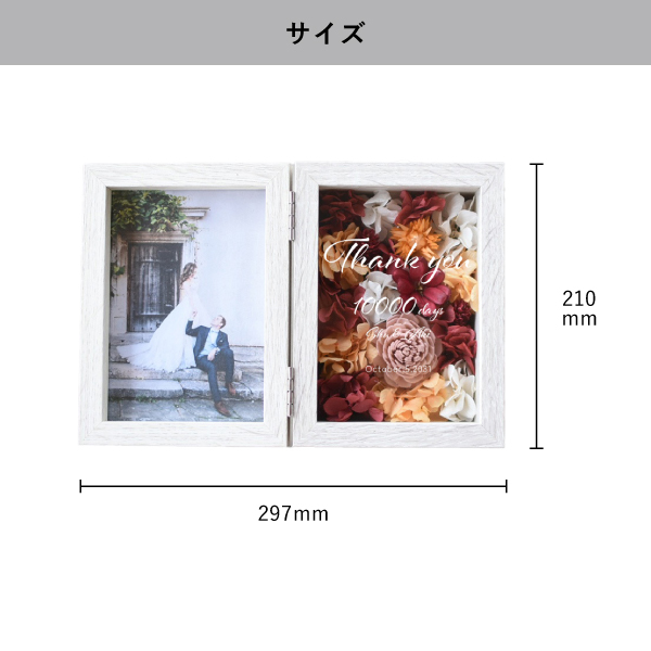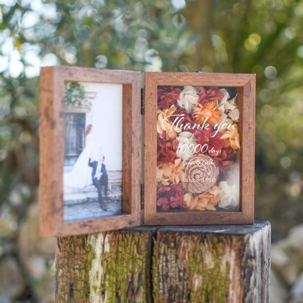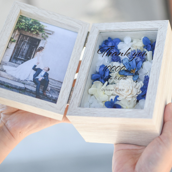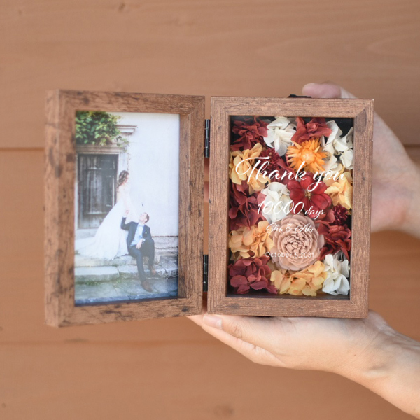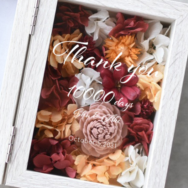 隣に大切なお写真を収めたフラワーボックス型の子育て感謝状です。