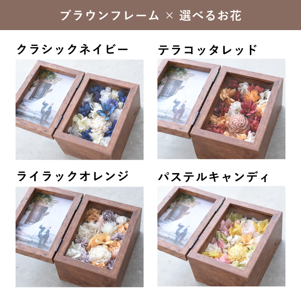 | 内容物 | 本体×1個 フラワーカラー:クラシックネイビー、テラコッタレッド、ライラックオレンジ、パステルキャンディよりお選びいただけます。 文字色:ブラック、ホワイトよりお選びいただけます。 |