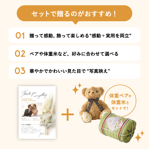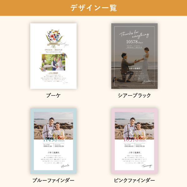 両親への感謝の言葉をつづるレターセット。写真を入れることができて、手紙も記念品として贈ることができます!