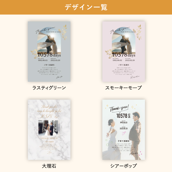 「子育て感謝状パネル」は、選べる57種類のデザインから、