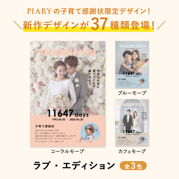 PIARYで両親プレゼントをご購入いただいた方に無料プレゼント!「普段はなかなか照れくさくて言えない…」そんな両親への感謝を伝えるのに、ピッタリなアイテム。