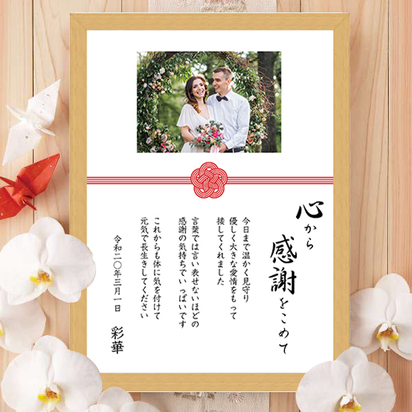 両親への感謝の言葉をつづるレターセット。写真を入れることができて、手紙も記念品として贈ることができます!