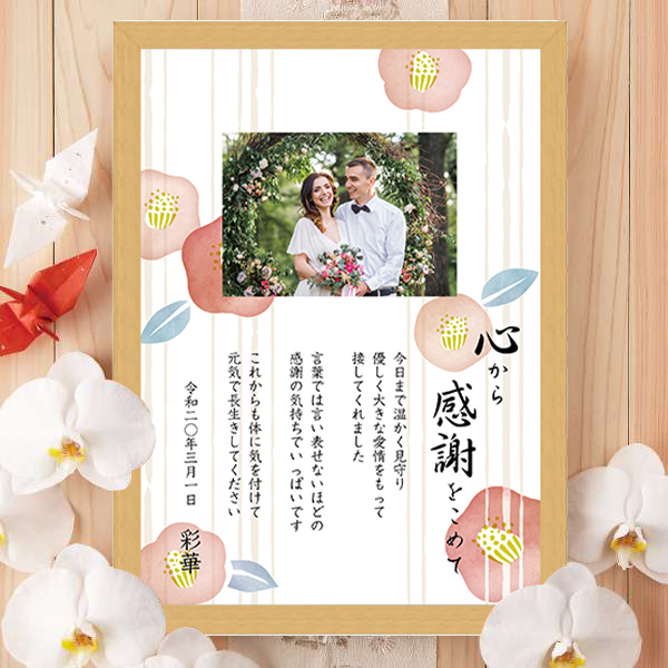 両親への感謝の言葉をつづるレターセット。写真を入れることができて、手紙も記念品として贈ることができます!