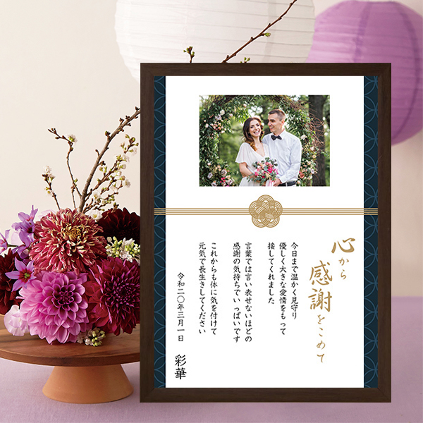 両親への感謝の言葉をつづるレターセット。写真を入れることができて、手紙も記念品として贈ることができます!