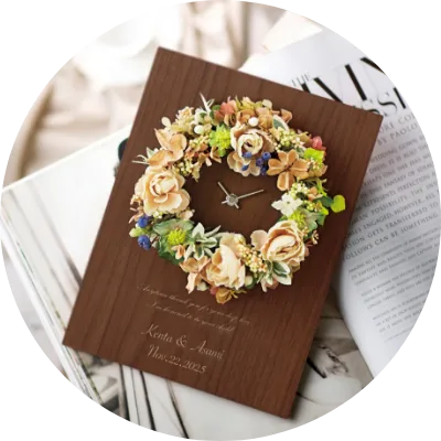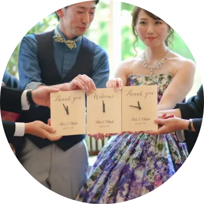 主流の木目調の三連時計は、我が家も実家もテイストが合わないなと思っており、シンプルな三連時計を探していました。結婚式当日だけでなく、その後お気に入りのインテリアとなったので大満足です。