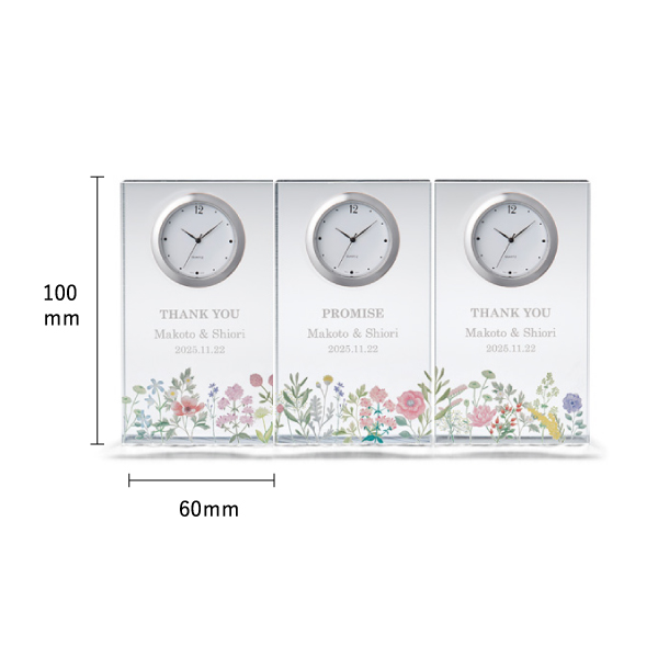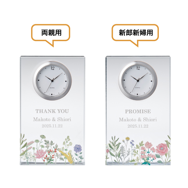 定番の時計でクリスタルだとシンプル過ぎるのでこちらの花柄を購入。 花束は渡さない予定なのでちょうど良いと思いました。