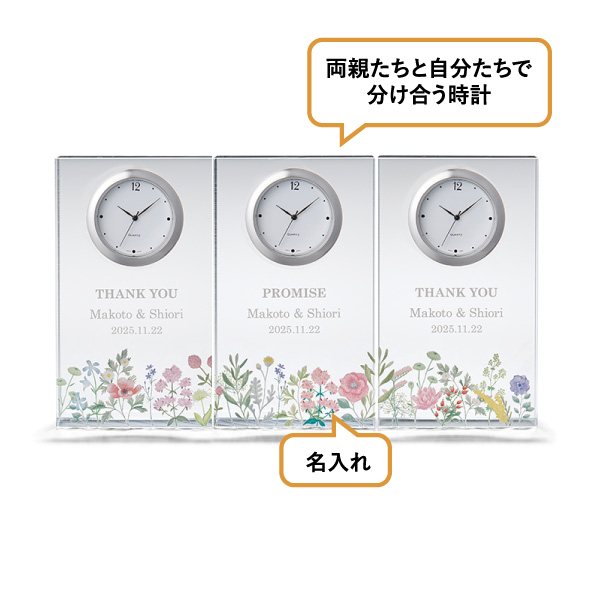 永遠に枯れることのない花に想いを託して…家族の絆がいつまでも続くよう願いを込めて贈る記念の時計です。