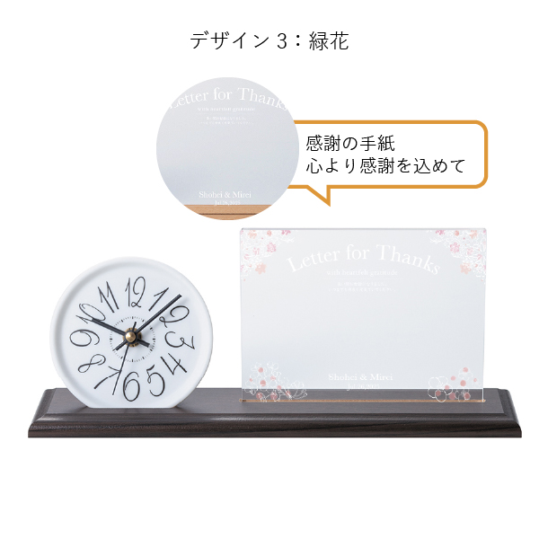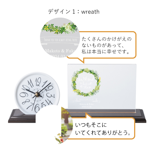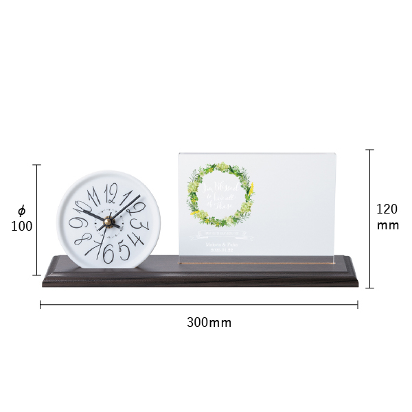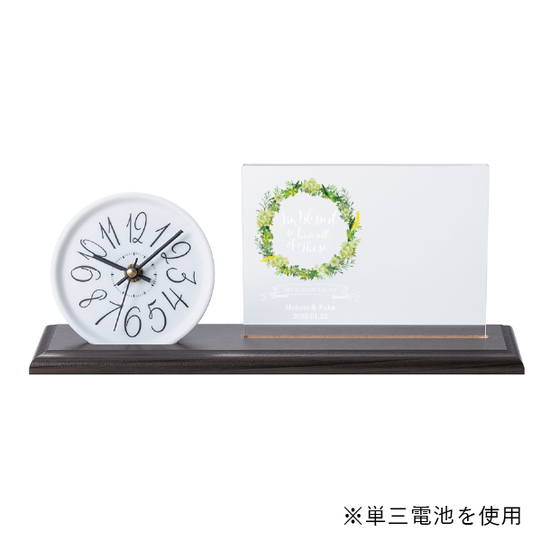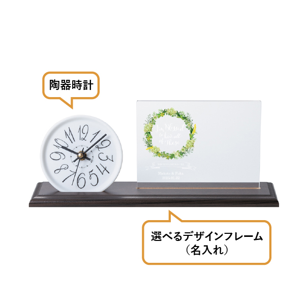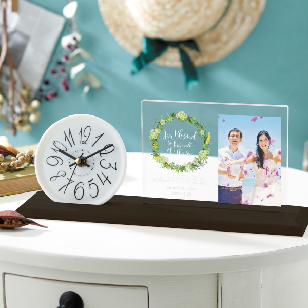 思い出の写真を入れることができるメッセージボードと、温もりを感じる陶器の時計をセットにしました。お気に入りの思い出の写真を入れて、世界に一つだけの記念品に。