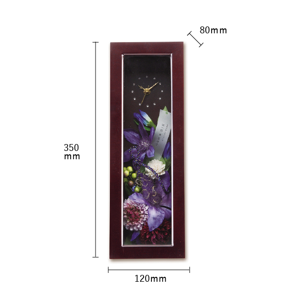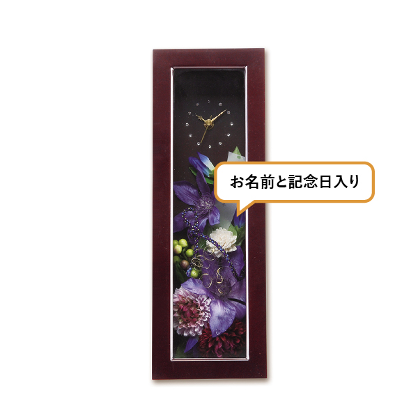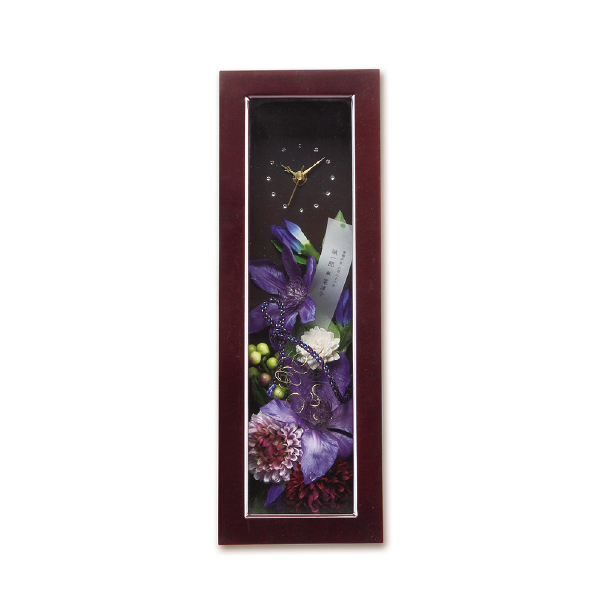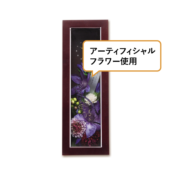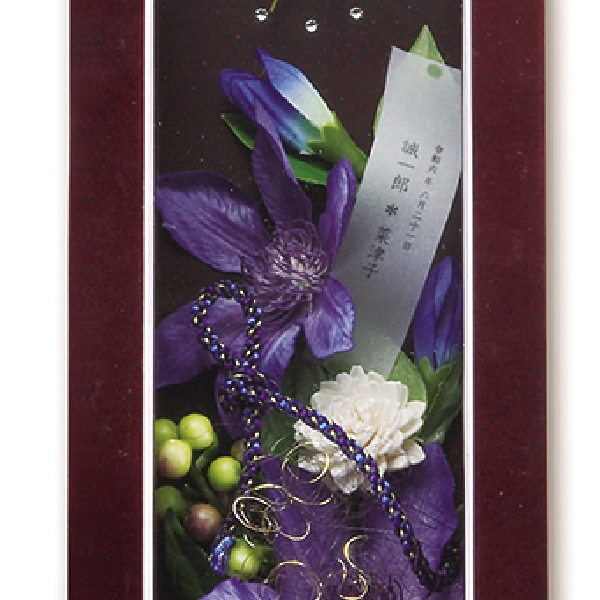 両親に喜ばれる和のデザインでシックに仕上げています。高級感ある木製フレームに、鮮やかで情熱的な花がふたりの想いを代弁します。