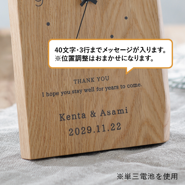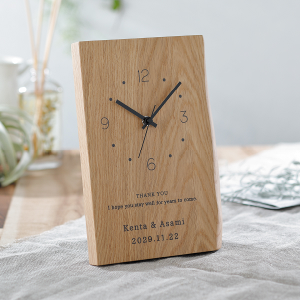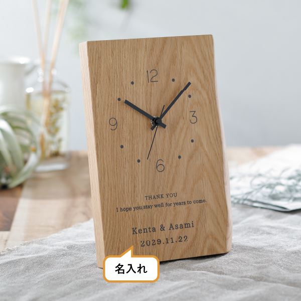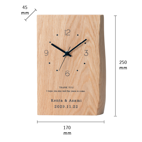 木の持つ質感を存分に活かした置き時計で、今まで育ててくれた時とこれからも歩んでいく時を優しく刻みます。