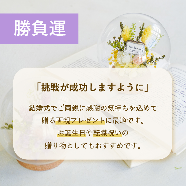花風水 ガラスドームアレンジ パープル(勝負運)|両親プレゼントならPIARY(ピアリー)