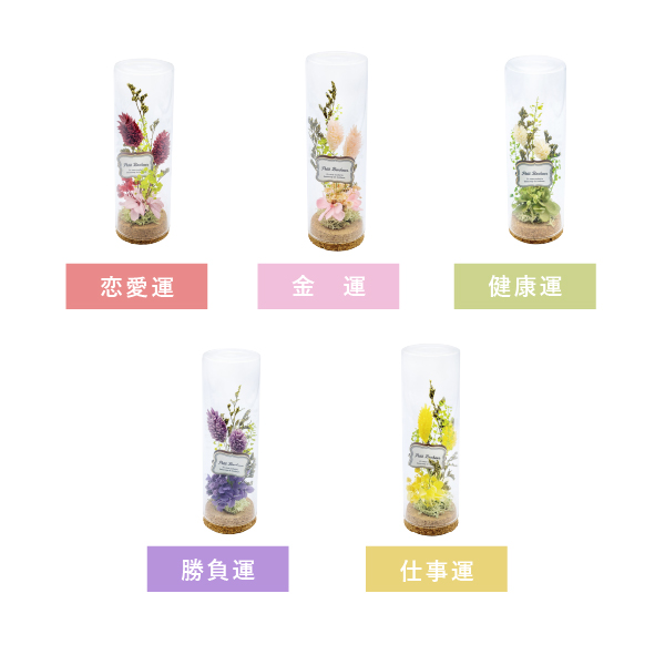 花風水には、恋愛運・金運・仕事運・勝負運・健康運の5つの運気があります。伝えたい想いでお花の色を選んでください。