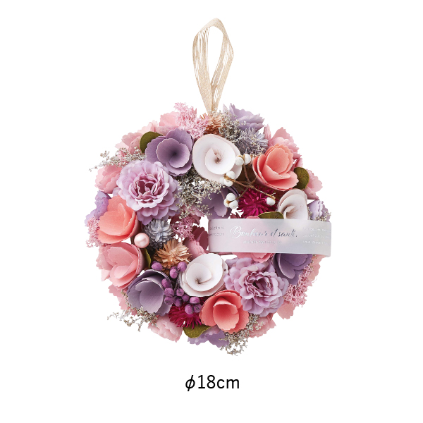 大人の女性に喜ばれる、上品でかわいいパープルピンクのリースです。