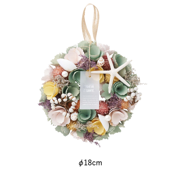 海を連想させる夏にぴったりの爽やかなリースが、リゾート気分を演出します。
