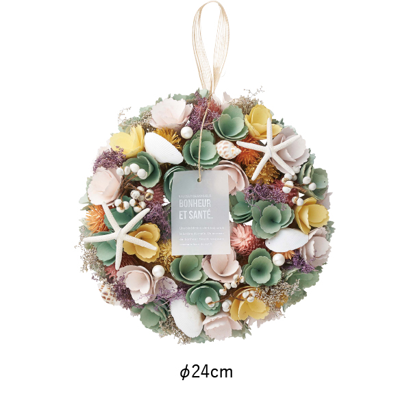 海を連想させる夏にぴったりの爽やかなリースが、リゾート気分を演出します。