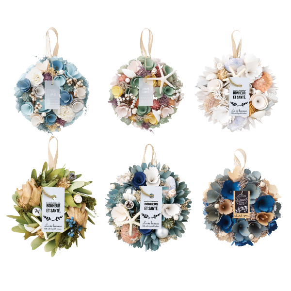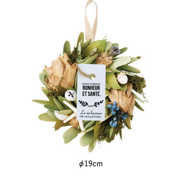 海を連想させる夏にぴったりの爽やかなリースが、リゾート気分を演出します。