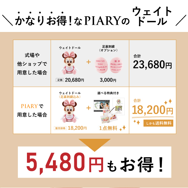 【11%OFF】ウェイトドール ベビーミニー 足裏刺繍込み|両親プレゼントならPIARY(ピアリー)