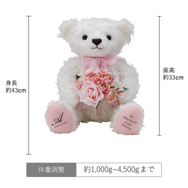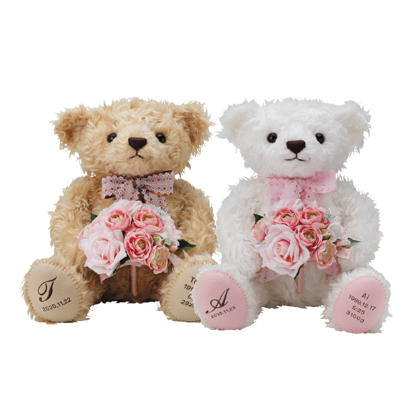 手に伝わる重みに大きな責任と喜びを感じたあの日が蘇り、立派に成長したおふたりの姿により一層の幸せを感じるウェイトテディベア。