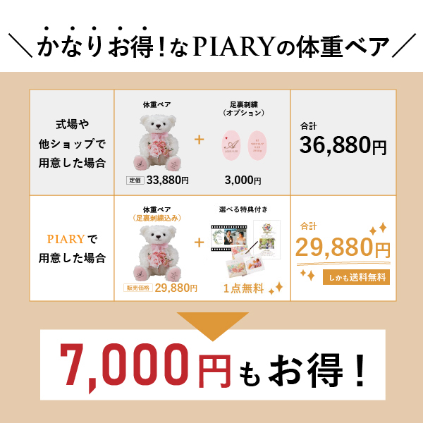 【11%OFF】ウェイトベア ベリーナベア 花束タイプ(1体)スノーホワイト 足裏刺繍込み|両親プレゼントならPIARY(ピアリー)