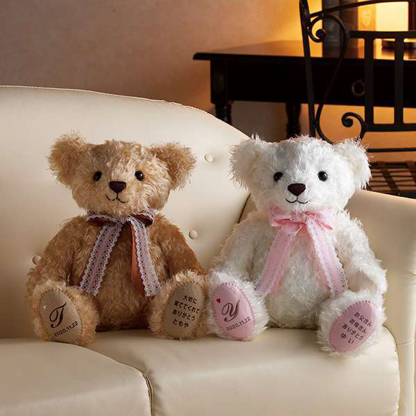 両親へのプレゼントに選びました。 私の生まれた時の体重と同じ重さであることを伝えたら、そうなのね…と感慨深そうにくまちゃんを抱きしめていました。 足裏の刺繍もきれいに入っていてかわいいです。 ラッピングしてある状態で自宅に届くのですが、披露宴で渡すときにラッピングしたままだと、写真にうつるときラッピング袋が反射してしまうので、私たちは一度ラッピングをはずして両親に渡しました。私たちの会場では、スタッフさんが披露宴後にまたラッピングをして両親に渡してくれたのですが、式場によって対応が違うと思うので、気になる方は聞いてみると良いかもしれません!