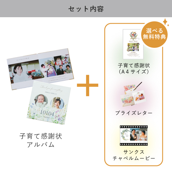 | 内容 | 子育て感謝アルバム 10ページ(半透明ケース付き) |