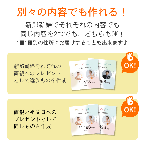 【6%OFF】【PIARY限定】子育て感謝状アルバム 両家分(2冊)セット |結婚式 両親プレゼント・両親贈呈品|両親プレゼントならPIARY(ピアリー)