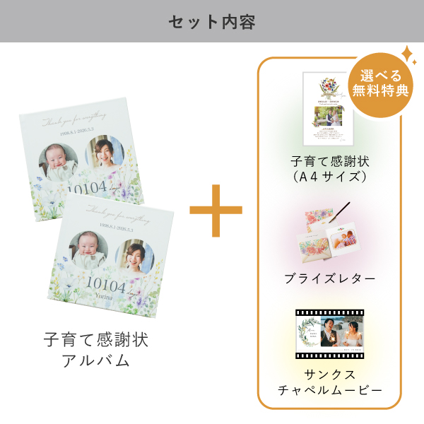 | 内容 | 子育て感謝アルバム 10ページ×2冊(半透明ケース付き) |