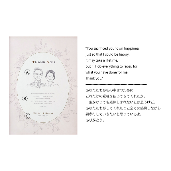 両親への感謝の言葉をつづるレターセット。写真を入れることができて、手紙も記念品として贈ることができます!