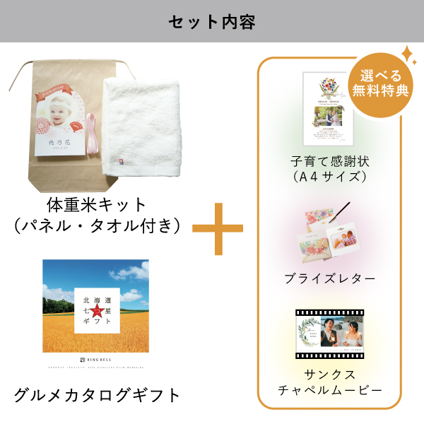体重米手作りキット(北海道七つ星ギフト【5000円コース】カムイ+PREMIUM バスタオル1枚(ホワイト))|両親プレゼントならPIARY(ピアリー)