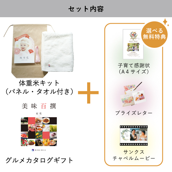 体重米手作りキット(リンベルカタログギフト 美味百撰【5000円コース】紅花+PREMIUM バスタオル1枚(ホワイト))|両親プレゼントならPIARY(ピアリー)