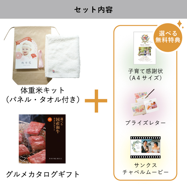 体重米手作りキット(選べる国産和牛カタログギフト【5000円コース】健勝(けんしょう)+PREMIUM バスタオル1枚(ホワイト))|両親プレゼントならPIARY(ピアリー)