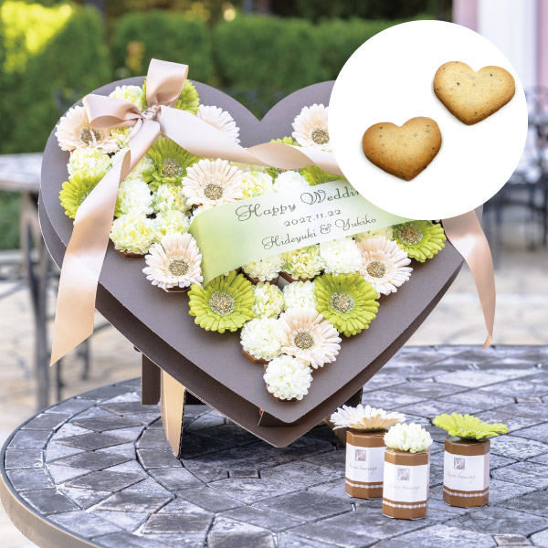 二人の特別な1日のために集まってくれたゲストの方々に、華やかなお花とクッキーで、ハッピーのおすそ分け。