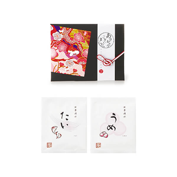 | 内容物 | ・梅茶漬け5g×1袋、鯛茶漬け5g×1袋 |