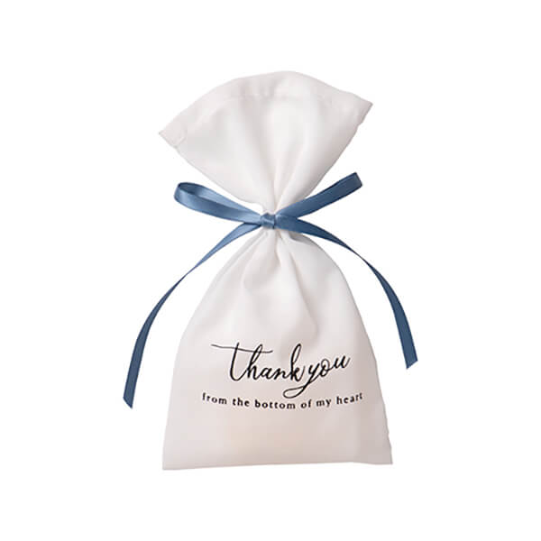 ブルーカラーのリボンが映えるミニバッグ。 ふわっとやさしいコットンのようなミニバッグ。