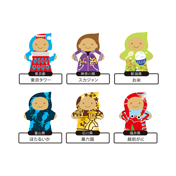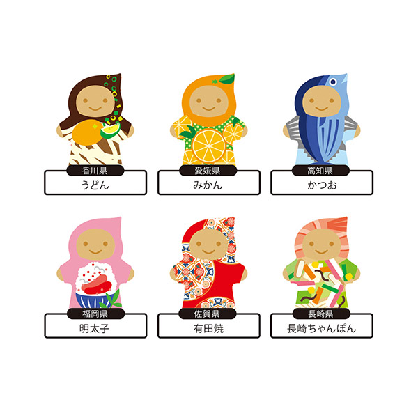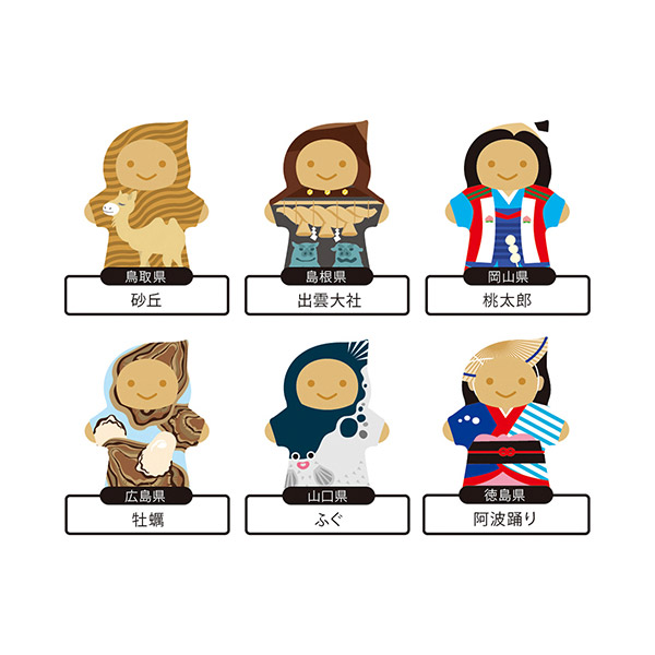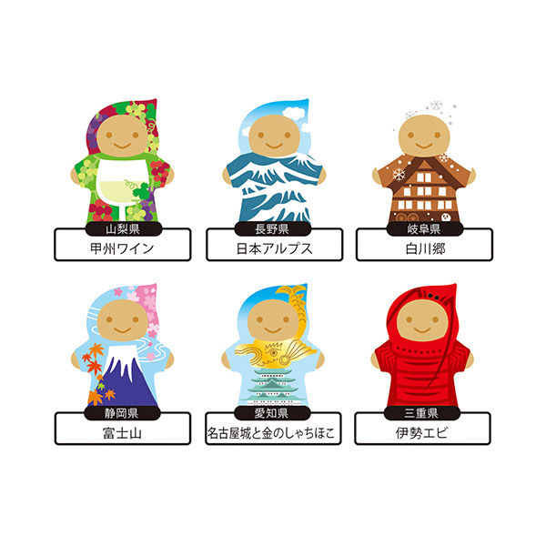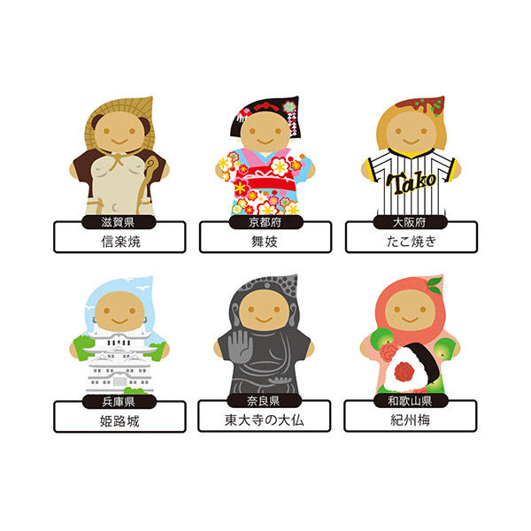 人形の形をしたお茶目な表情のクッキーを47都道府県をモチーフにしたプチギフトにしました!