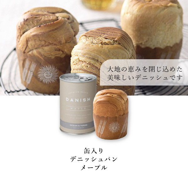 シンプルでおしゃれなパッケージが魅力の、長期保存可能なデニッシュパンです。缶を開けた瞬間、甘いメープルの香りに癒されます。ほっとする優しい甘さで、しっとり、ふっくらとしたデニッシュパンは、長期保存食とは思えないほどの美味しさ。防災用品としても常備食としても重宝します。