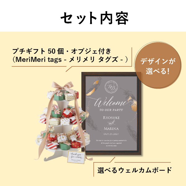 【送料無料】プチギフト&ウェルカムボードセット(MeriMeri tags - メリメリ タグズ -50個+オブジェ)|プチギフトならPIARY(ピアリー)