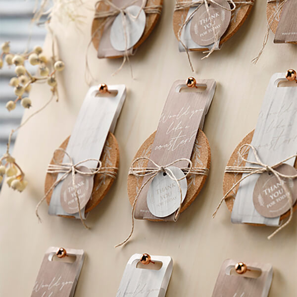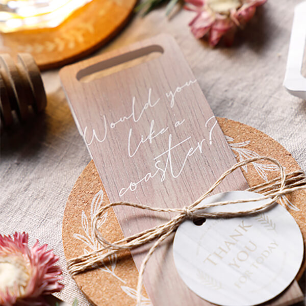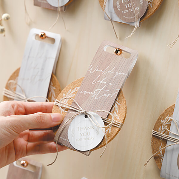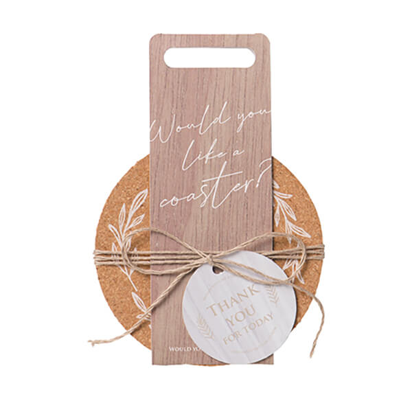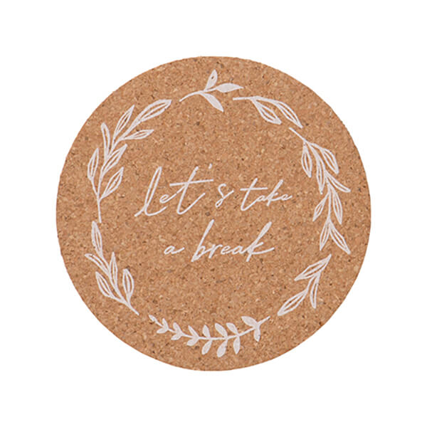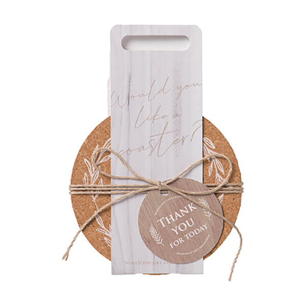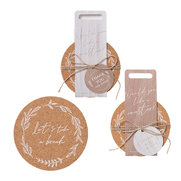 さぁ、休憩しよう!優しく伝えるコースター コルクが持つ温かな温度感が、心を癒すお手伝いをしてくれる。特別な日の感謝を、いつもの日常でも伝えられるナチュラルアイテム。