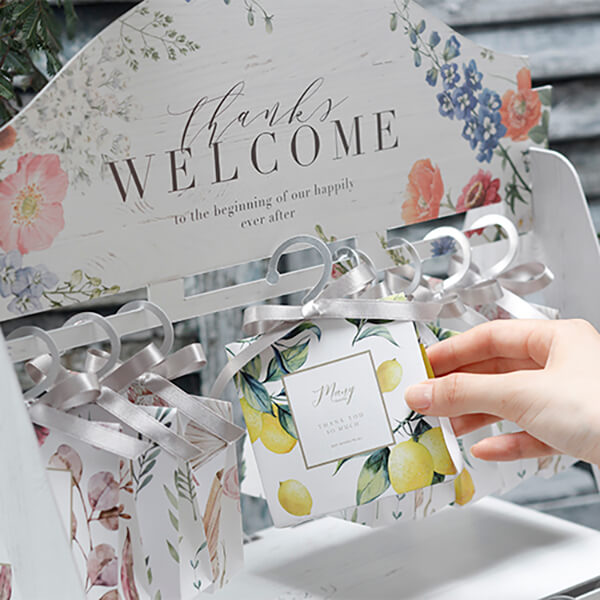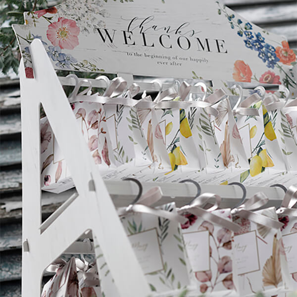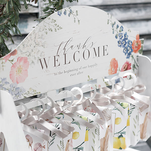 華やかで色とりどりのウェルカムギフト お出かけ前の洋服を選ぶように… お出かけ前にクローゼットからお気に入りの洋服を選ぶ時のように色とりどりで華やかな柄の中からお好きな柄を見つけてみてください。