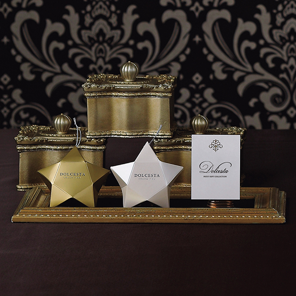 シックなスタイルのウェディングやナイトウェディングにも ラッキーモチーフとして人気の高い星をかたどったプチギフト。暗い夜空に輝くことから、災いから身を守り、未来を照らし、願いを叶えるものと信じられてきた星に、ゲストの幸運を願って贈ります。
